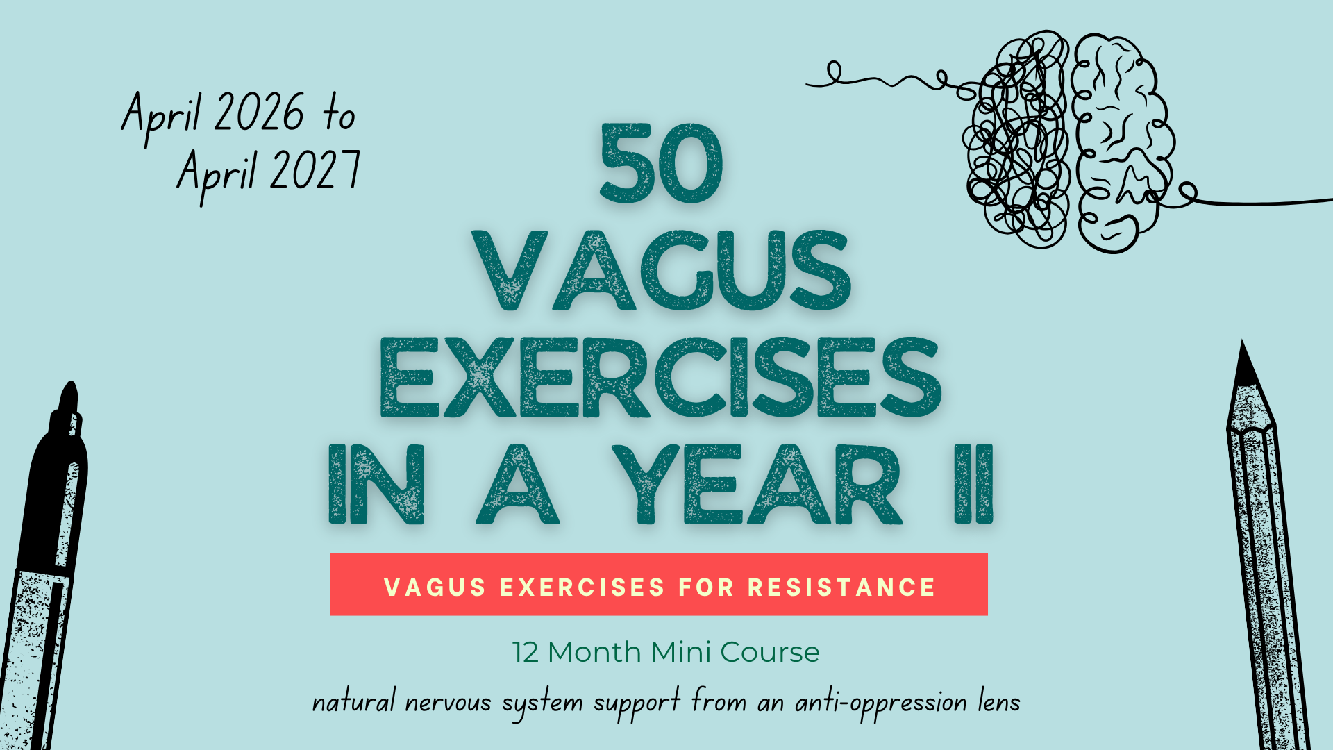 This course teaches 50 total Vagus Exercises over 12 months. Suitable for neurodivergent people, chronic illness warriors, and mental health professionals. Vagus nerve activation helps us feel our feelings without numbing out or getting flooded.